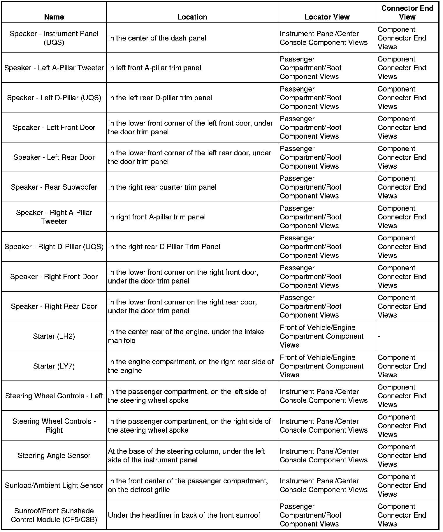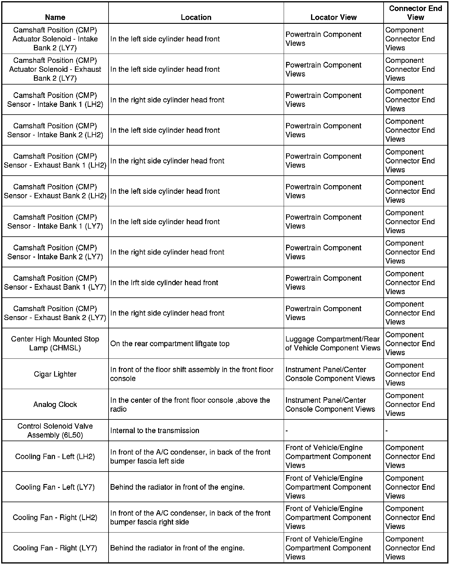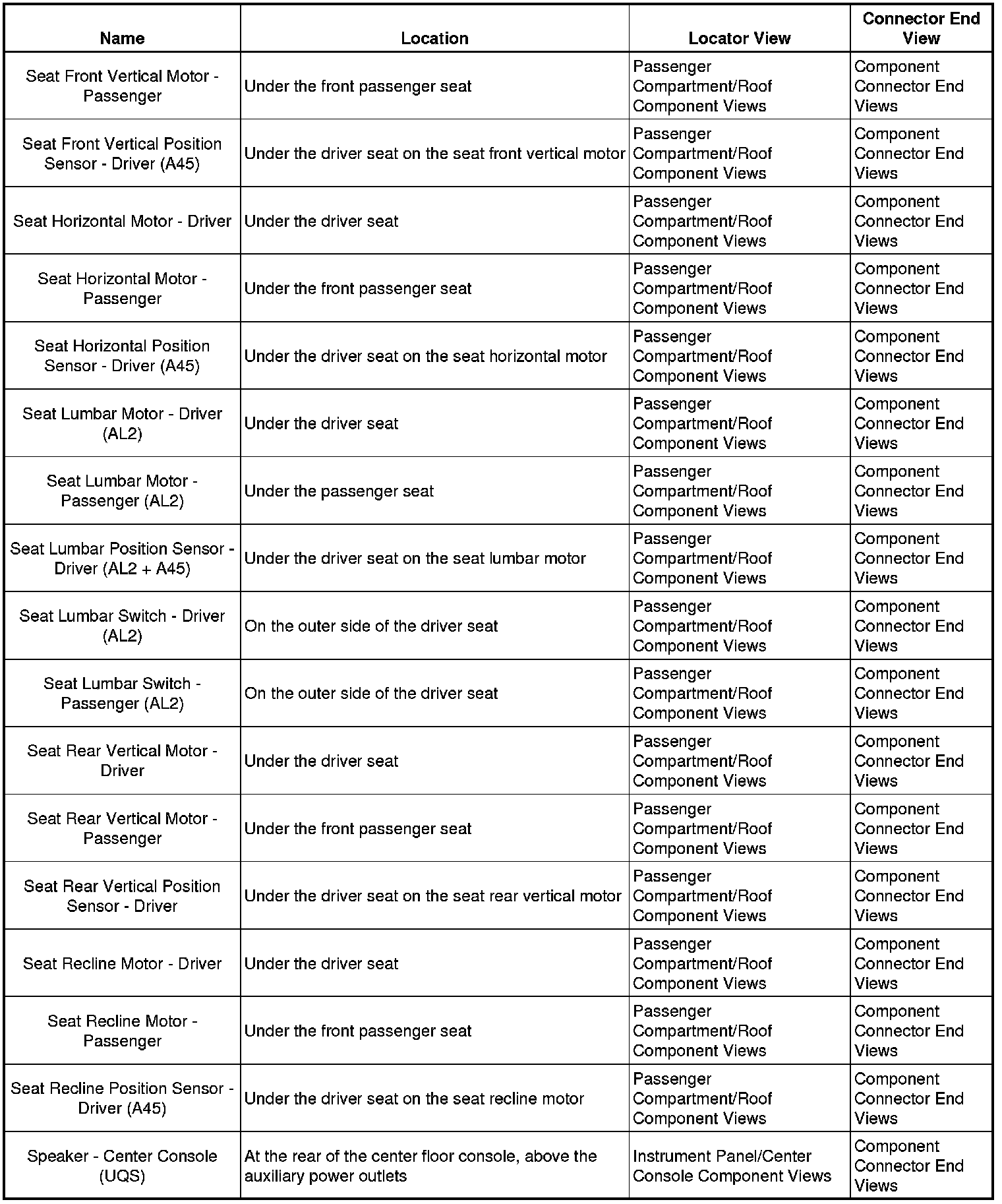 Master Electrical Component ListA/C - Ant: