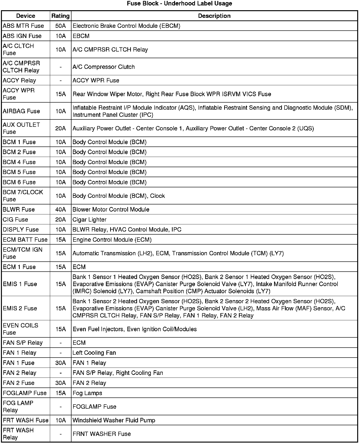 Fuse Block - Underhood Label