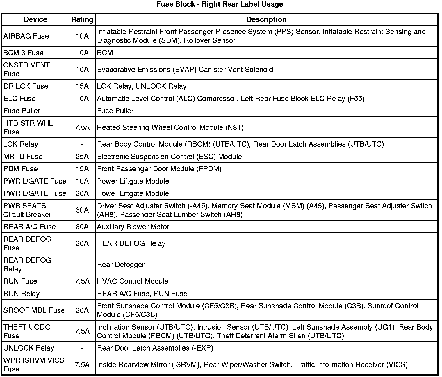 Fuse Block - Right Rear Label
