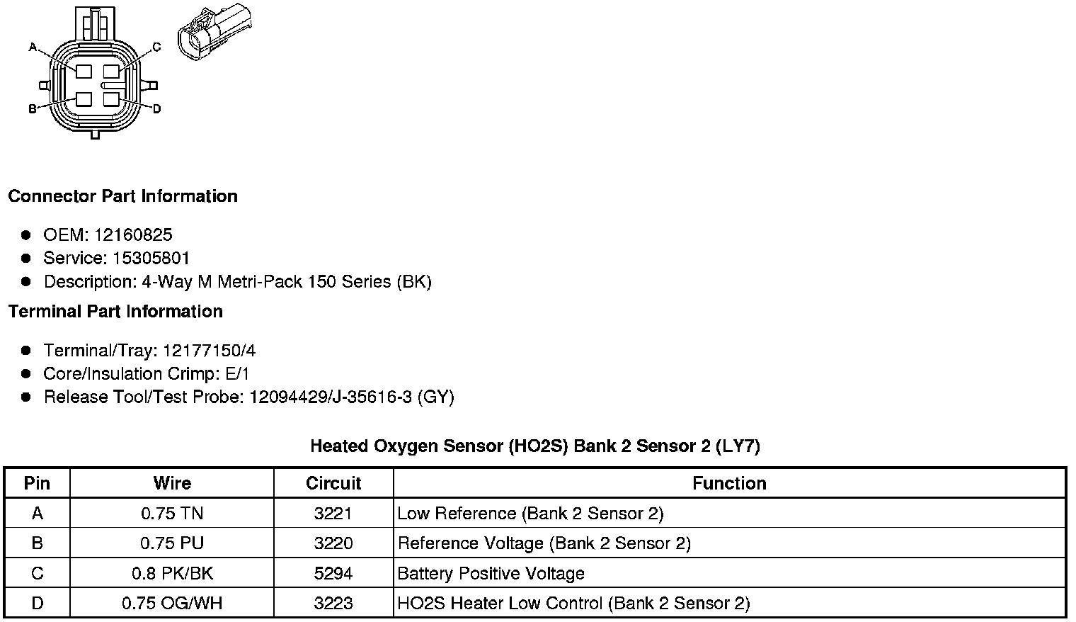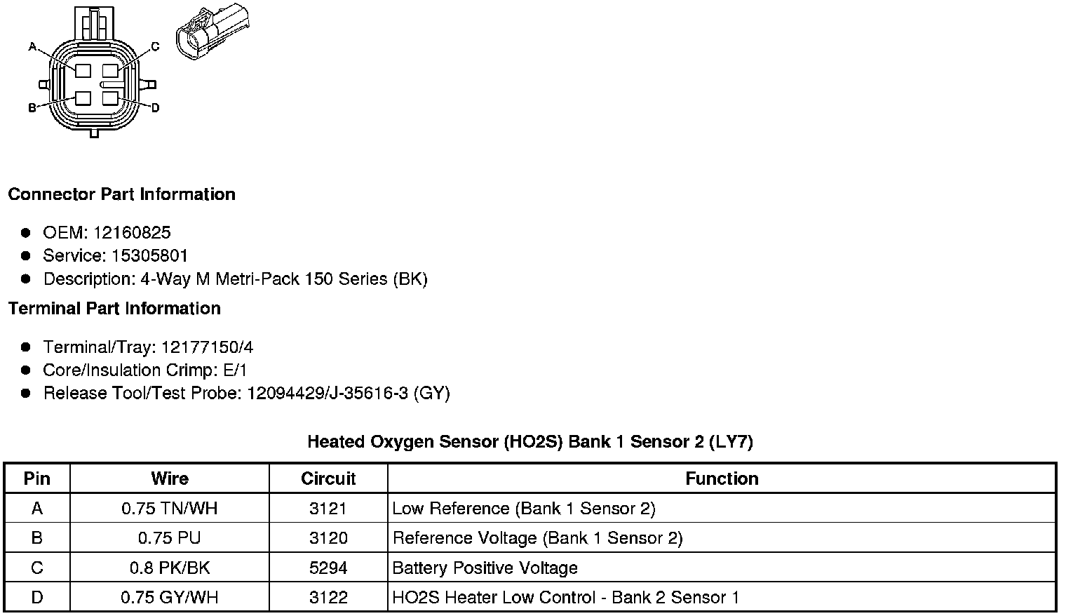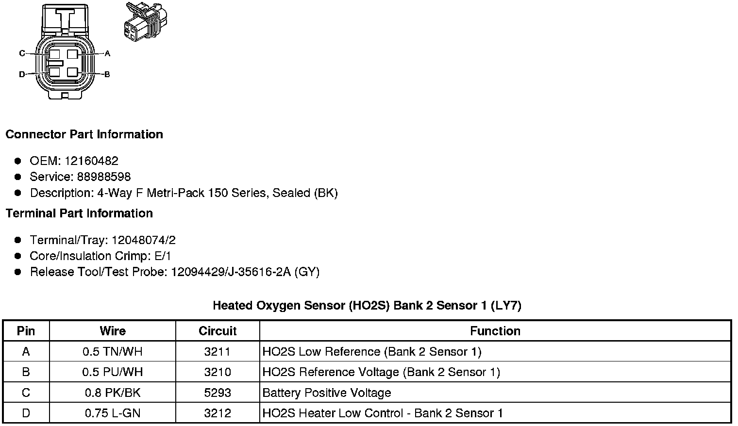 Heated Oxygen Sensor (HO2S) Bank 2 Sensor 1 (LY7 - Gas, 6 Cylinder, 3.6L, SFI, V6)