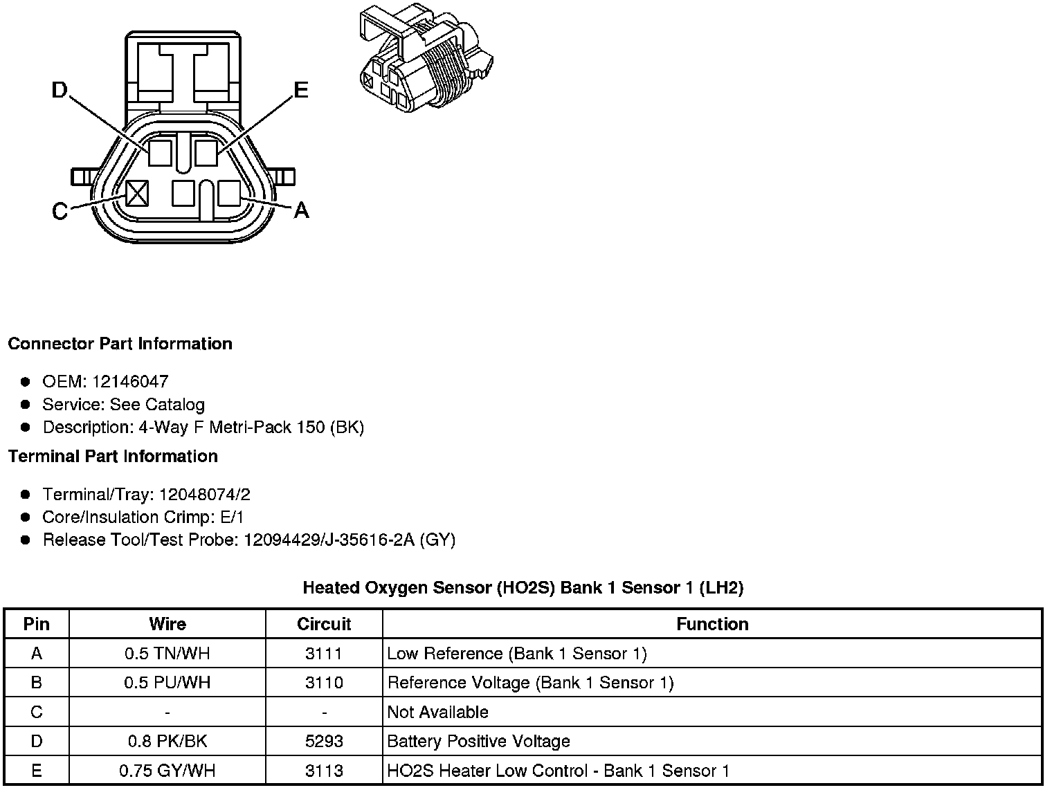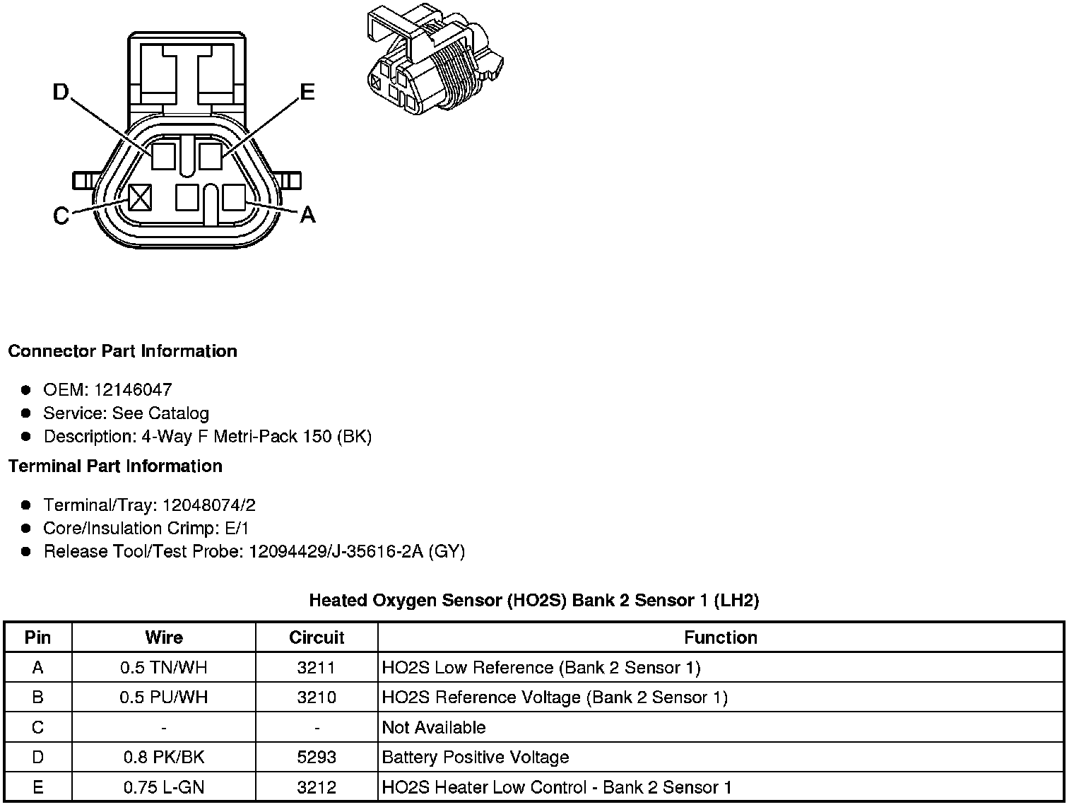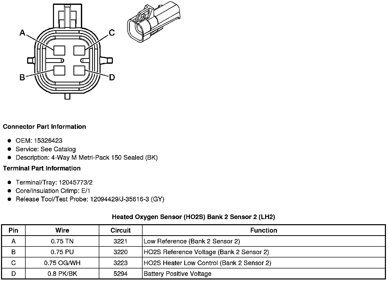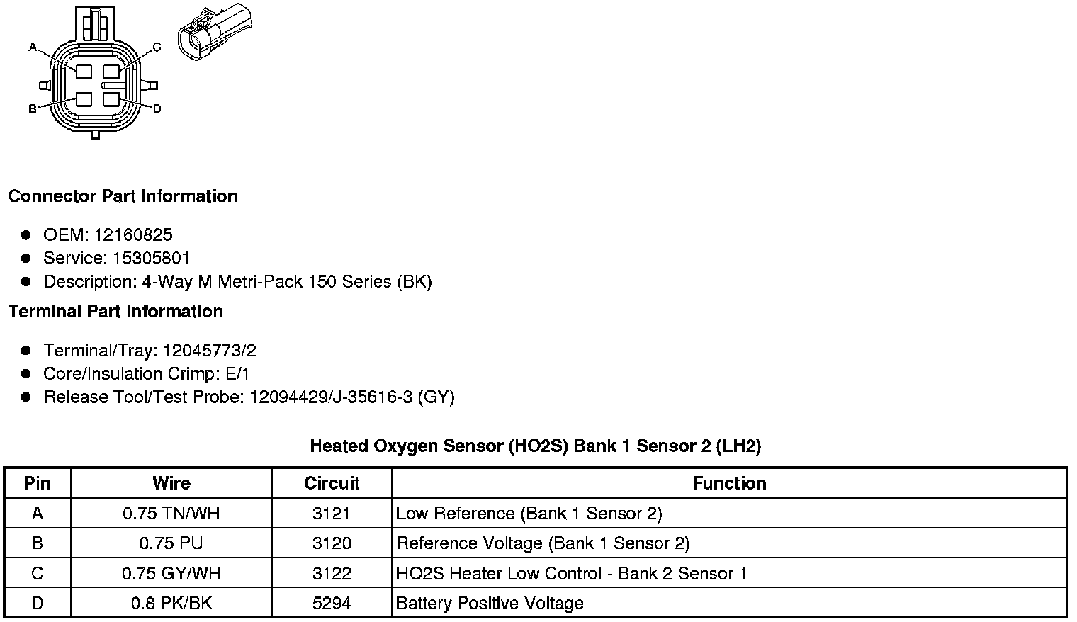 Heated Oxygen Sensor (HO2S) Bank 2 Sensor 1 (LY7 - Gas, 6 Cylinder, 3.6L, SFI, V6)