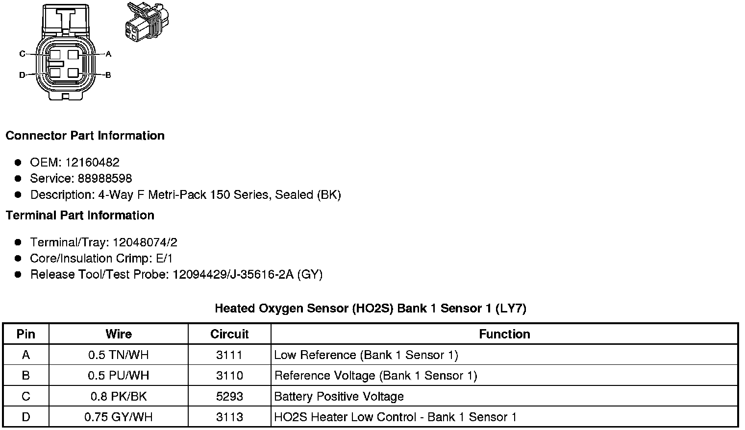 Heated Oxygen Sensor (HO2S) Bank 1 Sensor 1 (LY7 - Gas, 6 Cylinder, 3.6L, SFI, V6)