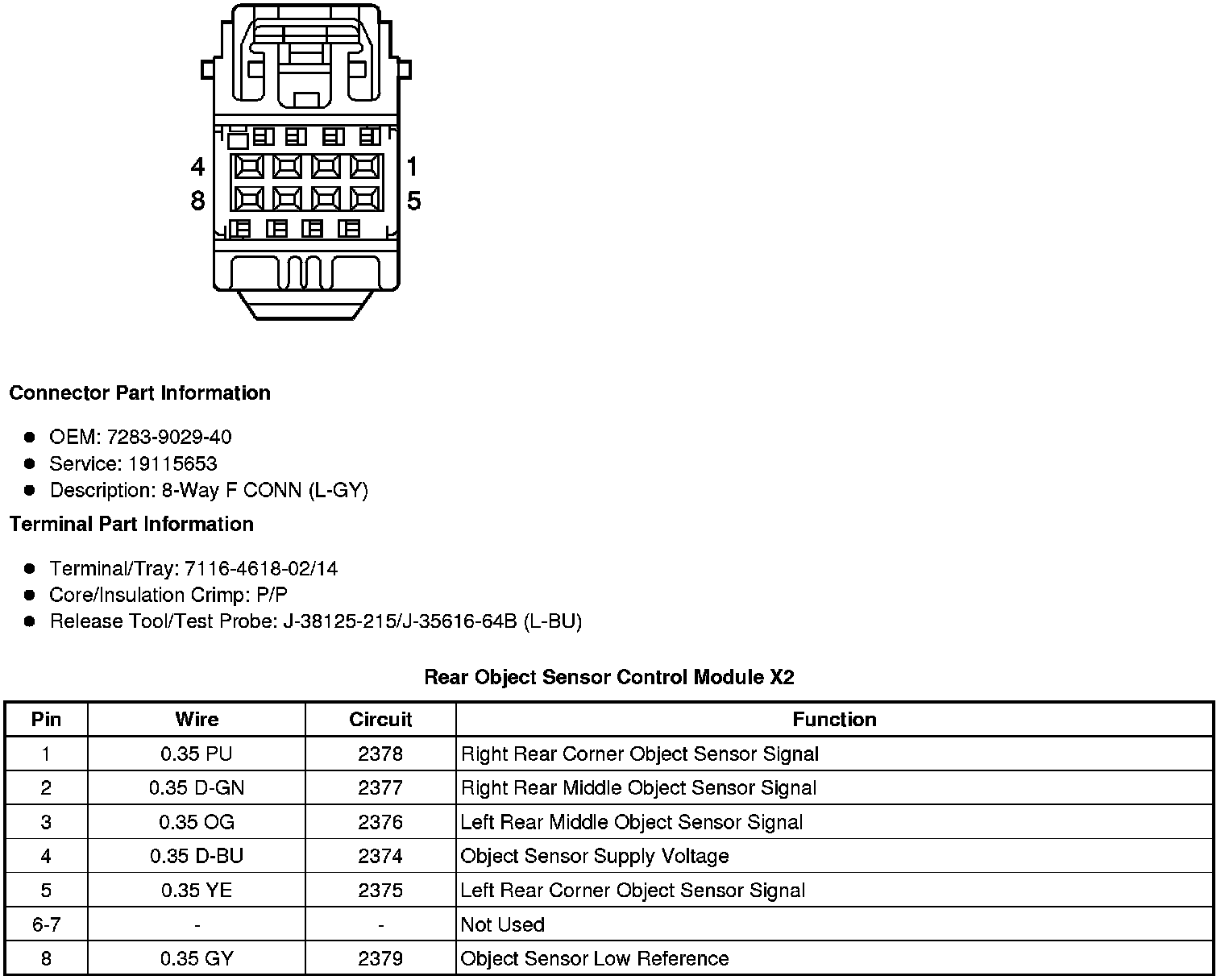 Rear Object Sensor Control Module X1