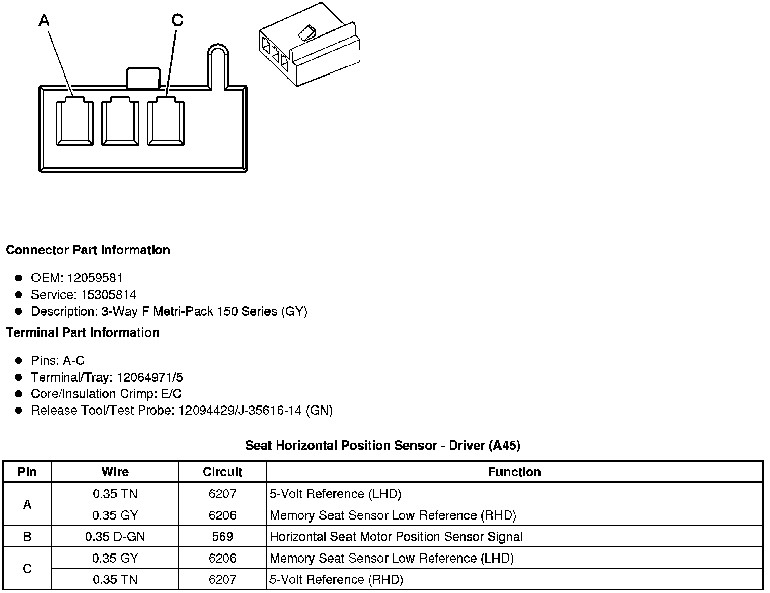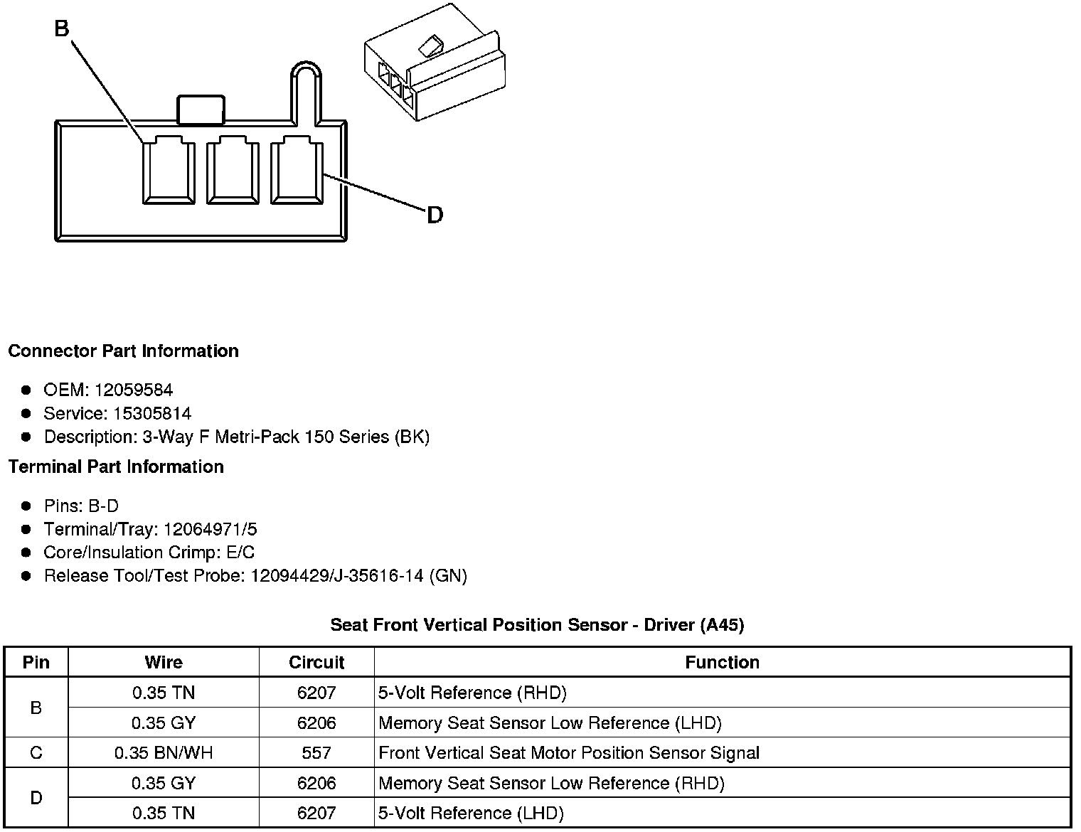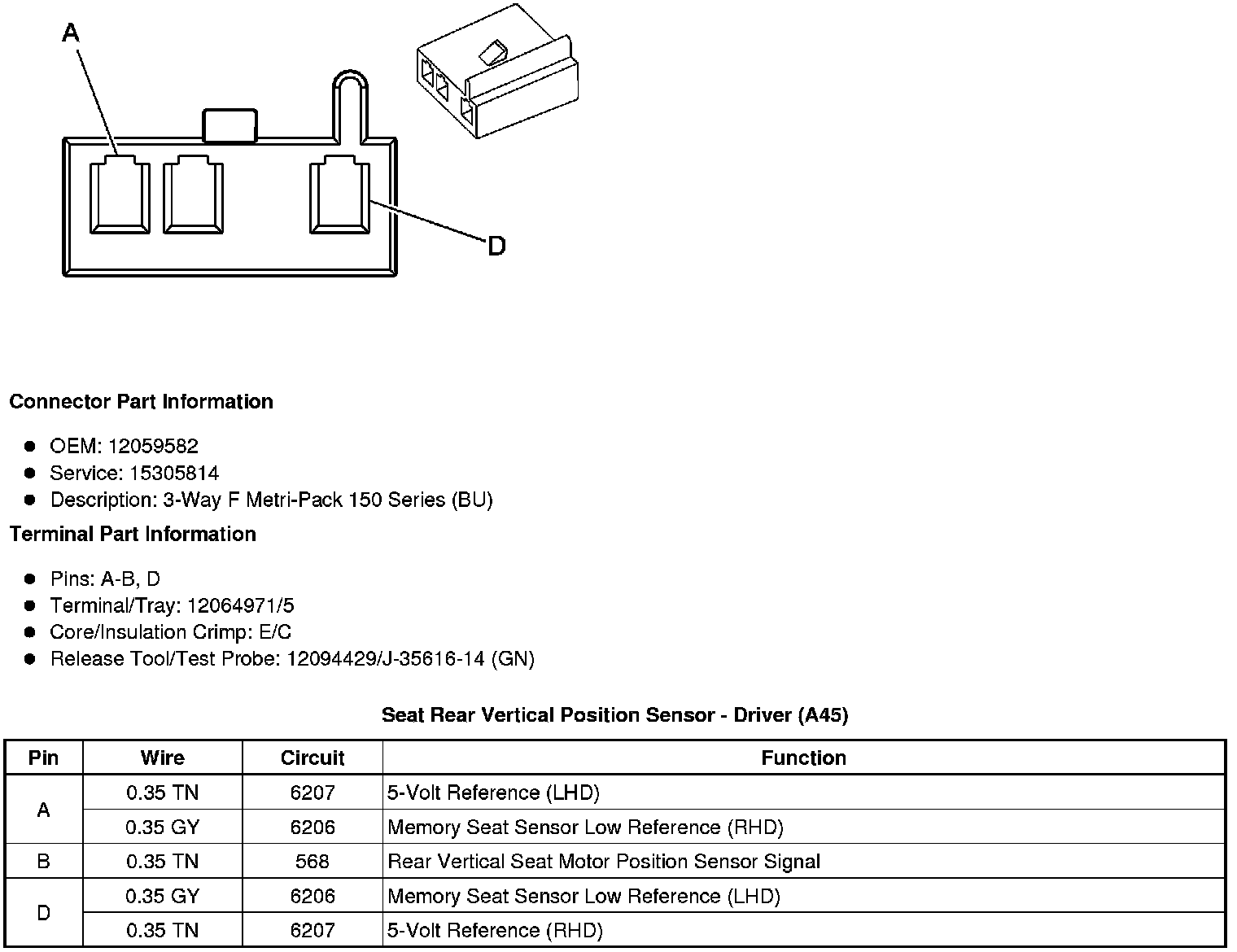 Seat Rear Vertical Position Sensor - Driver (A45)