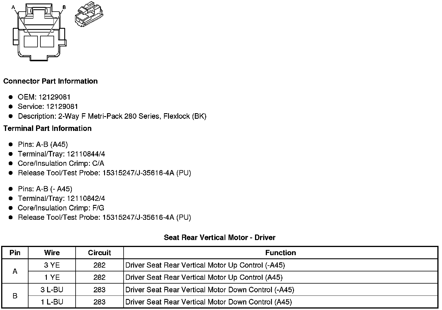 Seat Rear Vertical Position Sensor - Driver (A45)