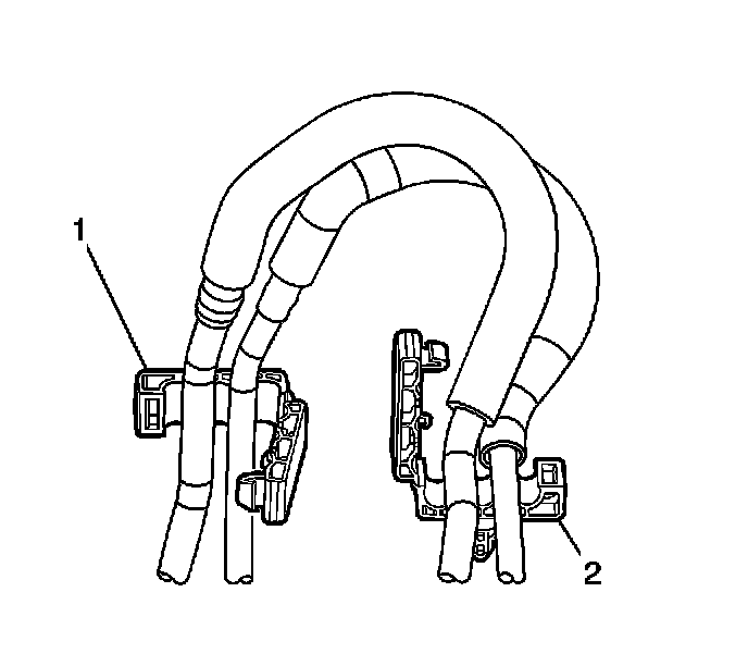10. Remove the EVAP line from the retaining feature (2) at the rear of the right head. Position the line aside.