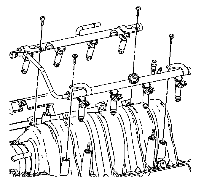 14. Remove the fasteners attaching the fuel rail to the intake manifold.