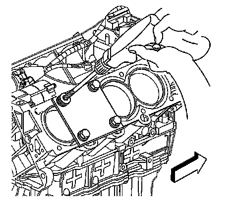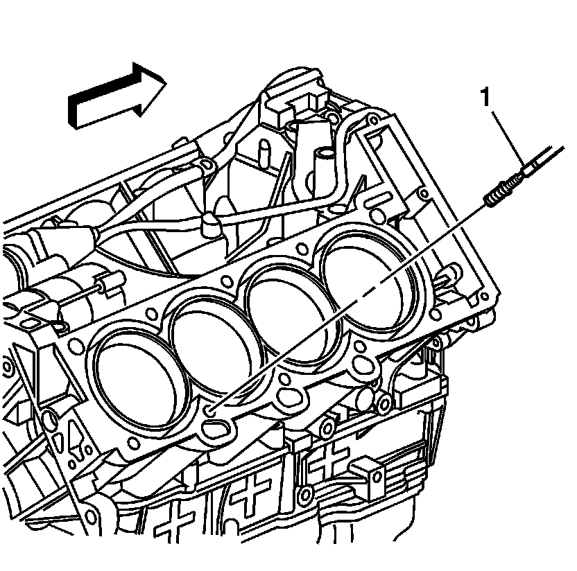 5. Remove the alignment pin (1) from the cylinder head bolt hole.