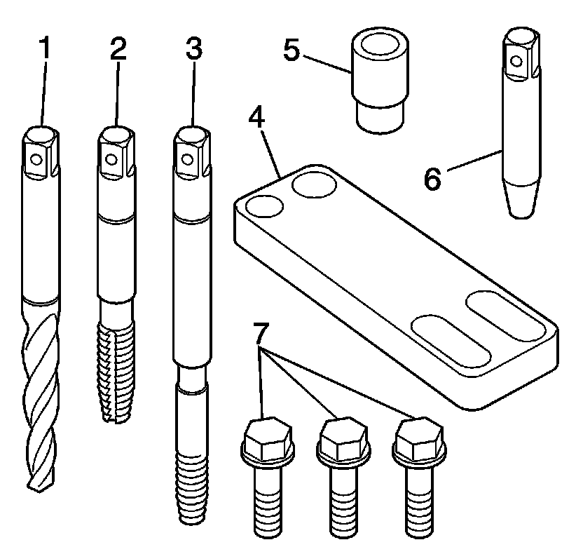 * The use of a cutting type fluid GM P/N 1052864, (Canadian P/N 992881), WD 40(R) or equivalent is recommended when performing the drilling, counterboring and tapping procedures.