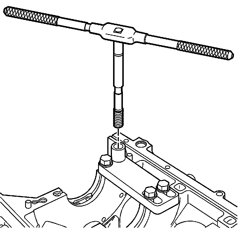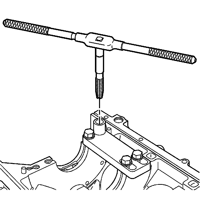 8. Using a suitable tapping wrench, tap the threads of the drilled hole by hand only.