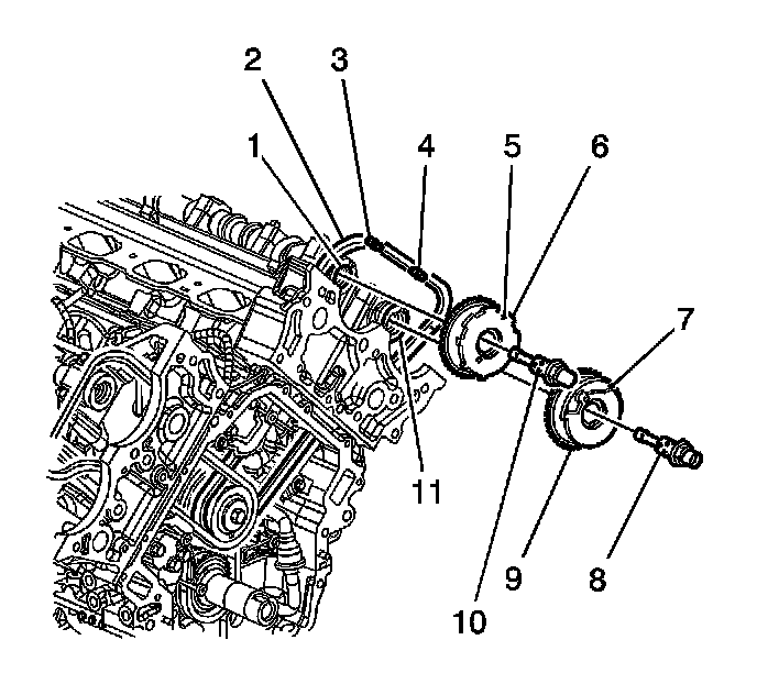 * The left camshaft actuator housing-Refer to Camshaft Position Actuator Housing Replacement - Left Side (Camshaft Position Actuator Housing Replacement - Left Side) .