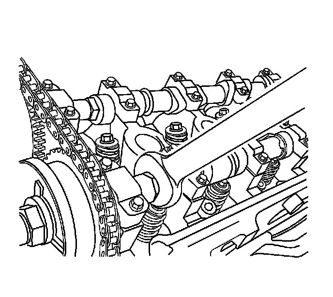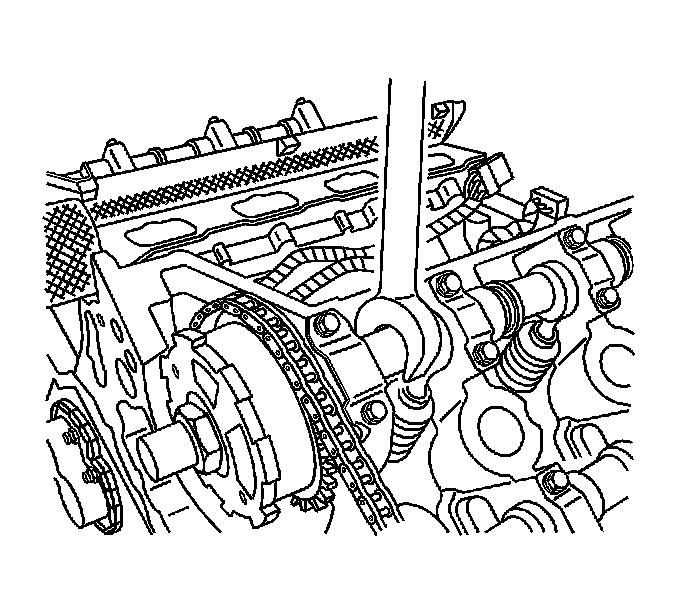 32. Install the right secondary timing chain tensioner. Refer to Secondary Camshaft Drive Chain Tensioner Replacement - Right Side (Secondary Camshaft Drive Chain Tensioner Replacement - Right) .