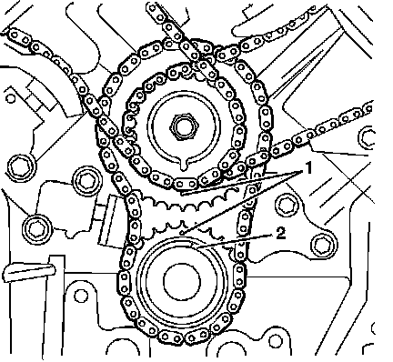 * The left secondary camshaft drive chain-Refer to Secondary Camshaft Drive Chain Replacement - Left Side (Secondary Camshaft Drive Chain Replacement - Left) .