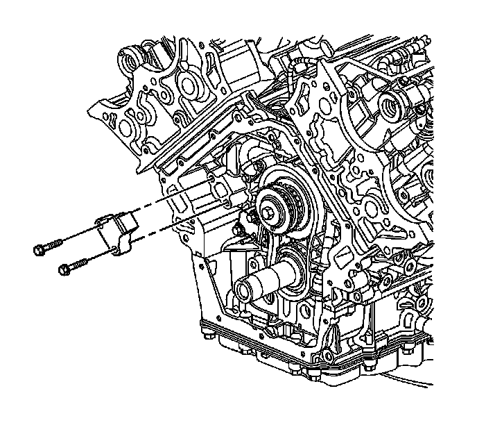 18. Install the left secondary timing chain tensioner. Refer to Secondary Camshaft Drive Chain Tensioner Replacement - Left Side (Secondary Camshaft Drive Chain Tensioner Replacement - Left) .