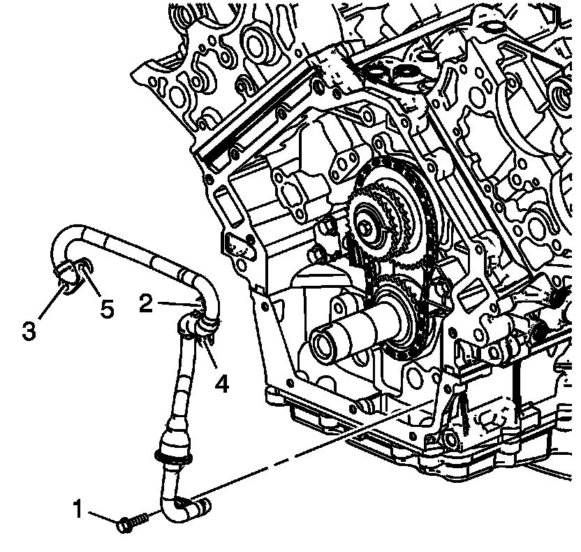 7. Remove the oil outlet tube (4) from the engine. Refer to Oil Pump Outlet Tube Removal (Overhaul) .