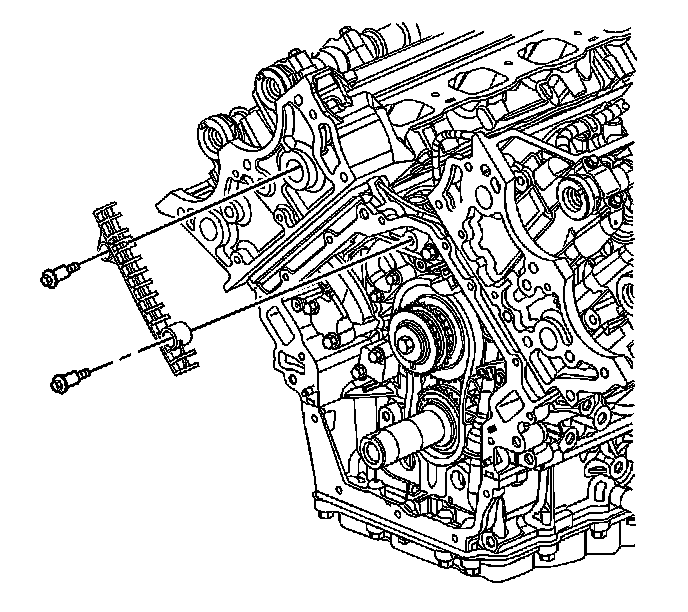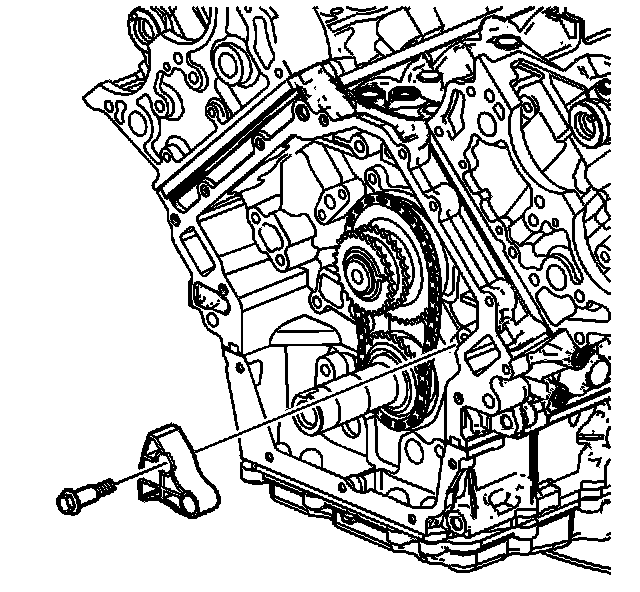 8. Remove the primary camshaft drive chain tensioner. Refer to Primary Camshaft Drive Chain Tensioner Replacement (Primary Camshaft Drive Chain Tensioner Replacement) .