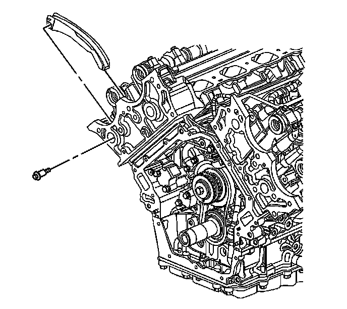 4. Install the left side secondary camshaft drive chain guide. Refer to Secondary Camshaft Drive Chain Guide Replacement - Left Side (Secondary Camshaft Drive Chain Guide Replacement - Left) .