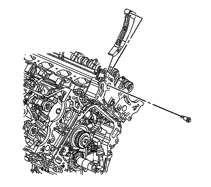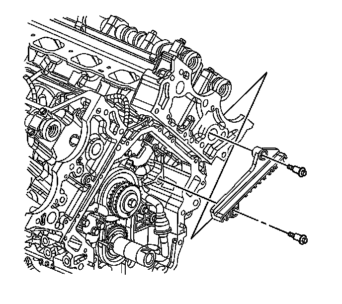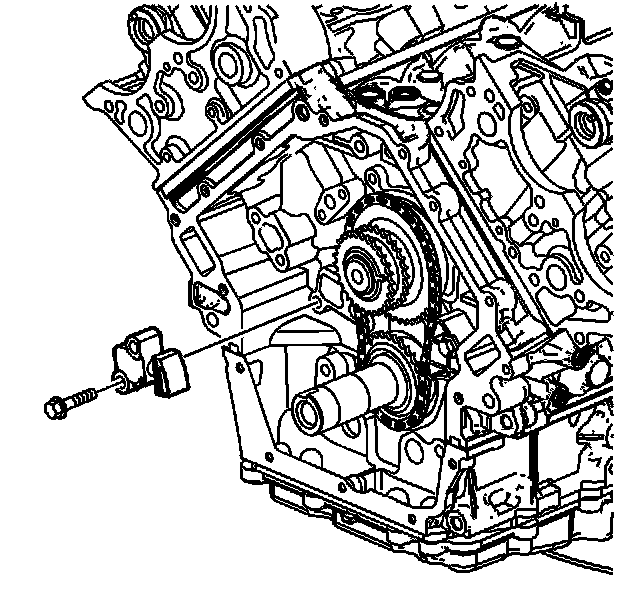 6. Remove the left side secondary camshaft drive chain guide. Refer to Secondary Camshaft Drive Chain Guide Replacement - Left Side (Secondary Camshaft Drive Chain Guide Replacement - Left) .