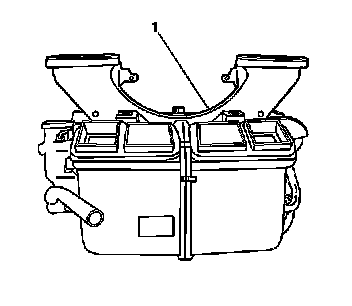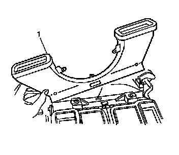 2. Press in on the tab to release the defroster duct (1) from the HVAC module.