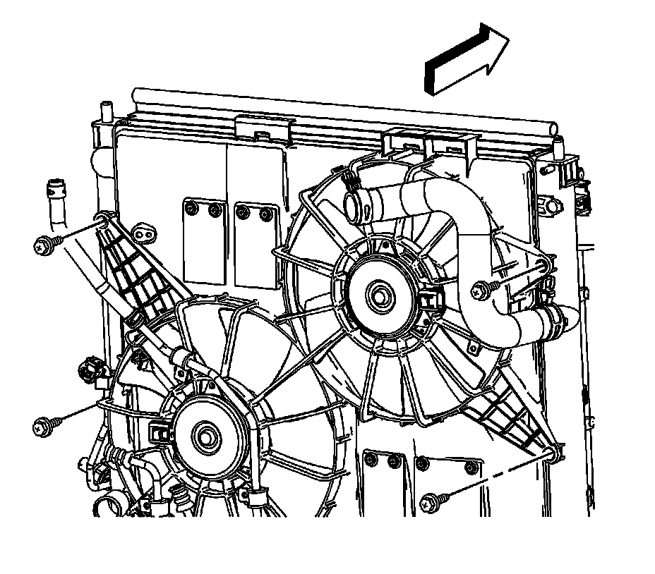 6. Remove the cooling fan shroud to radiator retaining bolts.
