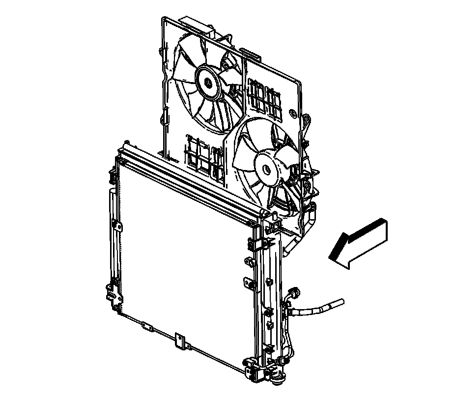 21. Connect the A/C line to the cooling fan shroud retainer clip.
