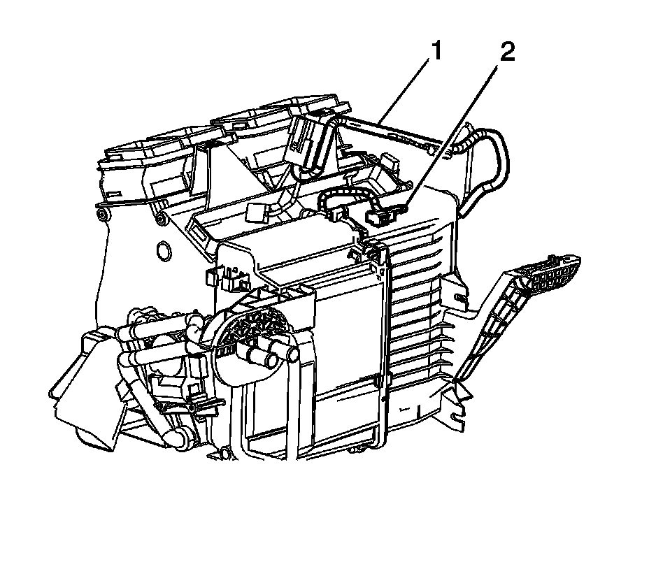 1. Remove the HVAC module. Refer to HVAC Module Assembly Replacement (Left Hand Drive) (HVAC Module Assembly Replacement (Left Hand Drive))HVAC Module Assembly Replacement (Right Hand Drive) (HVAC Module Assembly Replacement (Right Hand Drive)) .