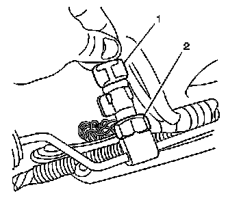 5. Disconnect the electrical connector (1) from the A/C refrigerant pressure sensor (2).