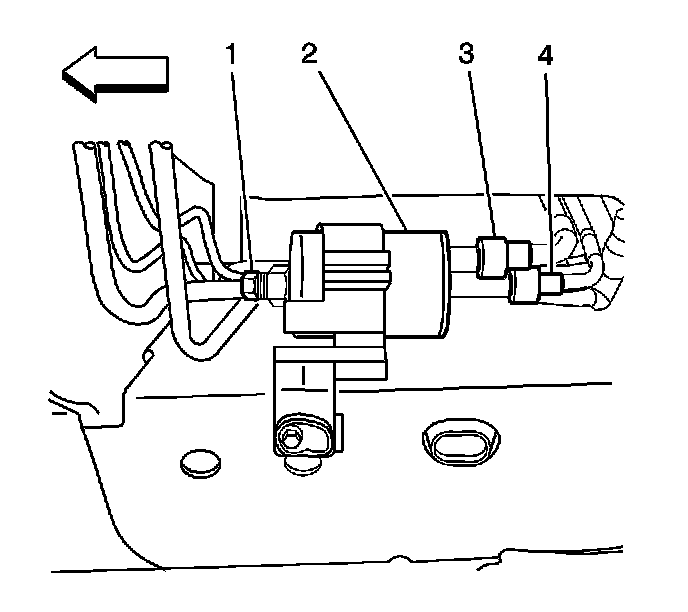 3. Disconnect the quick-connect fittings (3 and 4) at the fuel filter inlet. Refer to Metal Collar Quick Connect Fitting Service (Metal Collar Quick Connect Fitting Service) or Plastic Collar Quick Connect Fitting Service (Plastic Collar Quick Connect Fitting Service) .