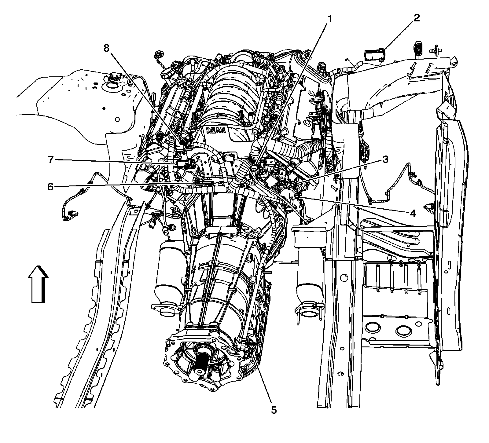 Harness Routing Views (LHD)Rear of Engine Compartment (LH2 - Gas, 8 Cylinder, 4.6L, SFI, V8, DOHC, HO)1 - X104