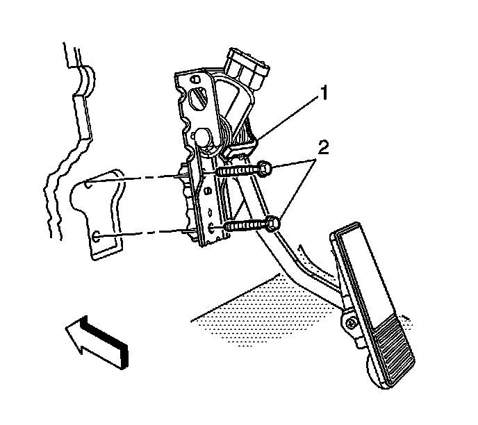 3. Remove the accelerated pedal bolts (2).