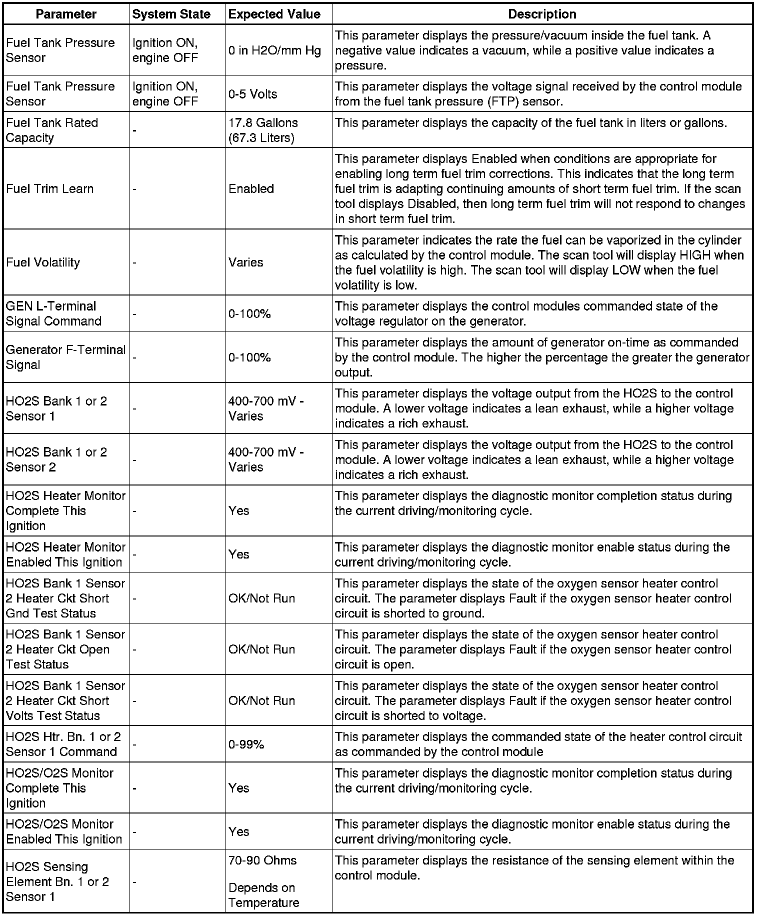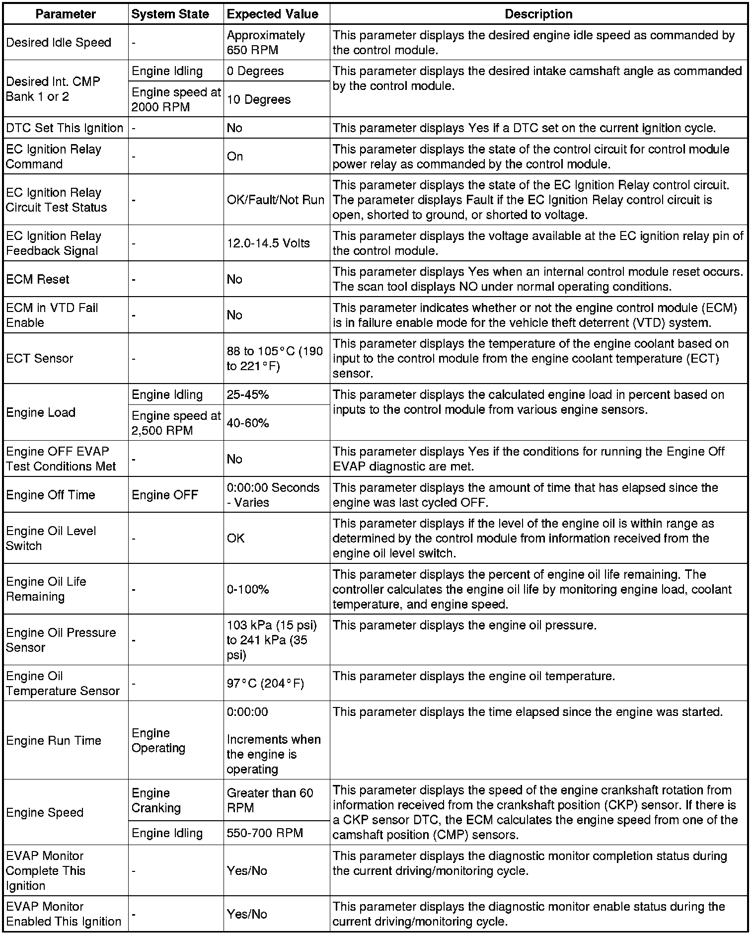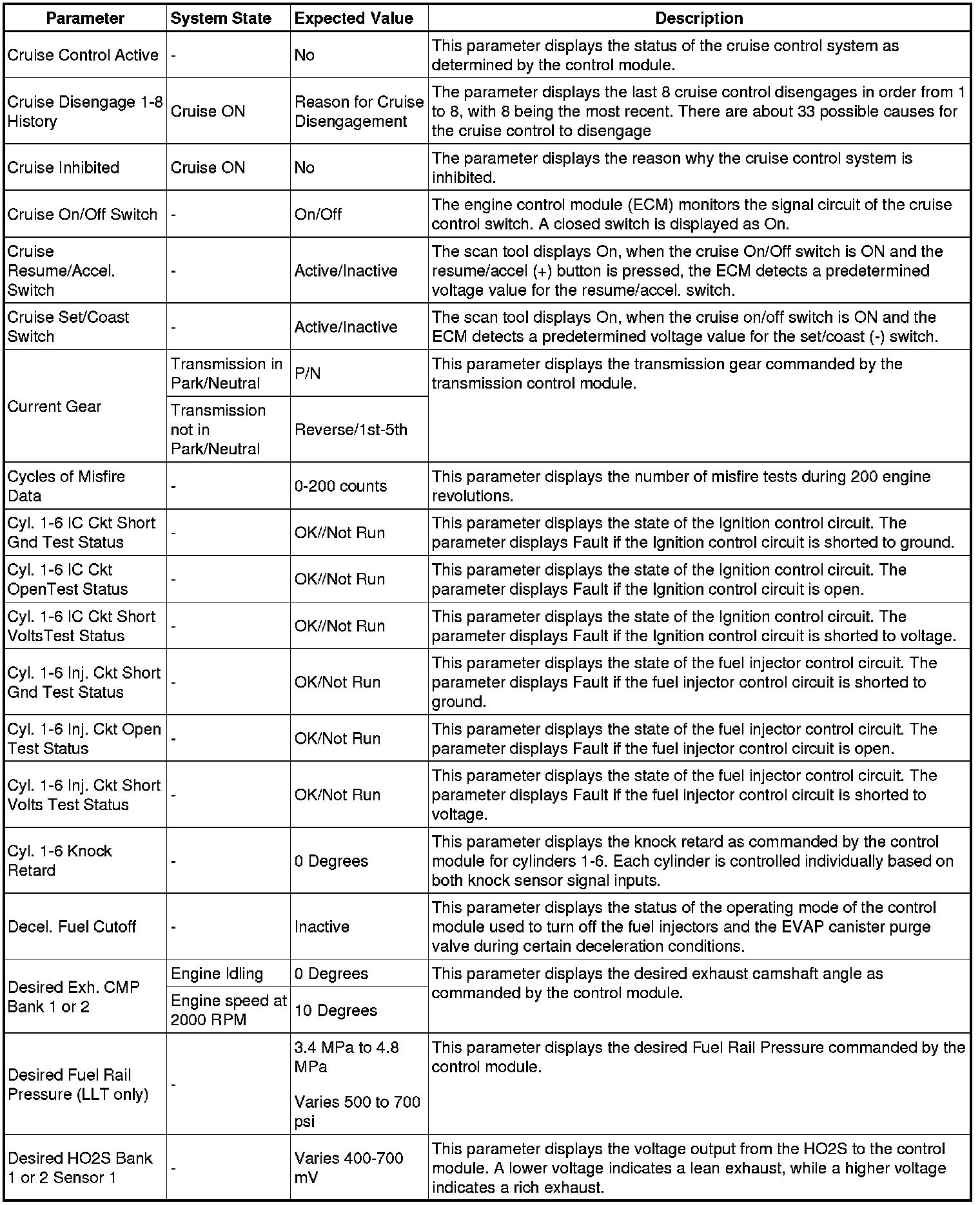 The Engine Control Module Scan Tool Data List contains all engine-related parameters that are available on the scan tool. The list is arranged in alphabetical order. A given parameter may appear in any one of the data lists, and in some cases may appear more than once, or in more than one data list in order to group certain related parameters together.