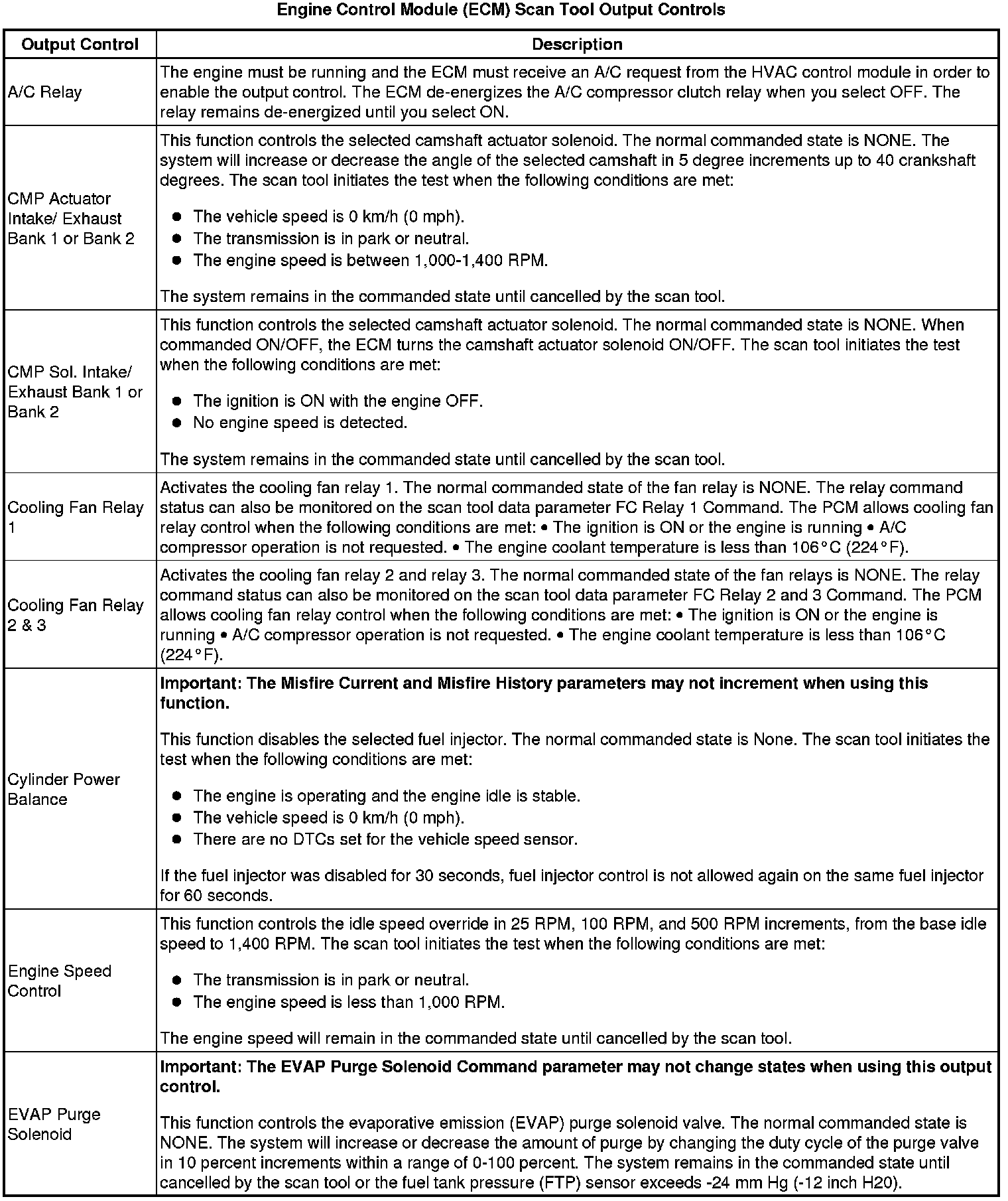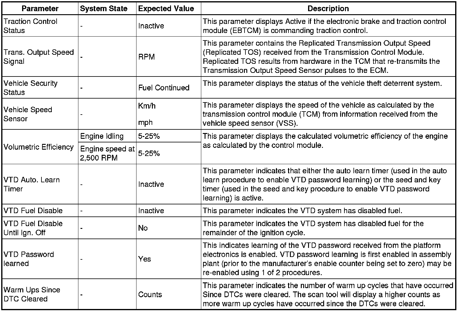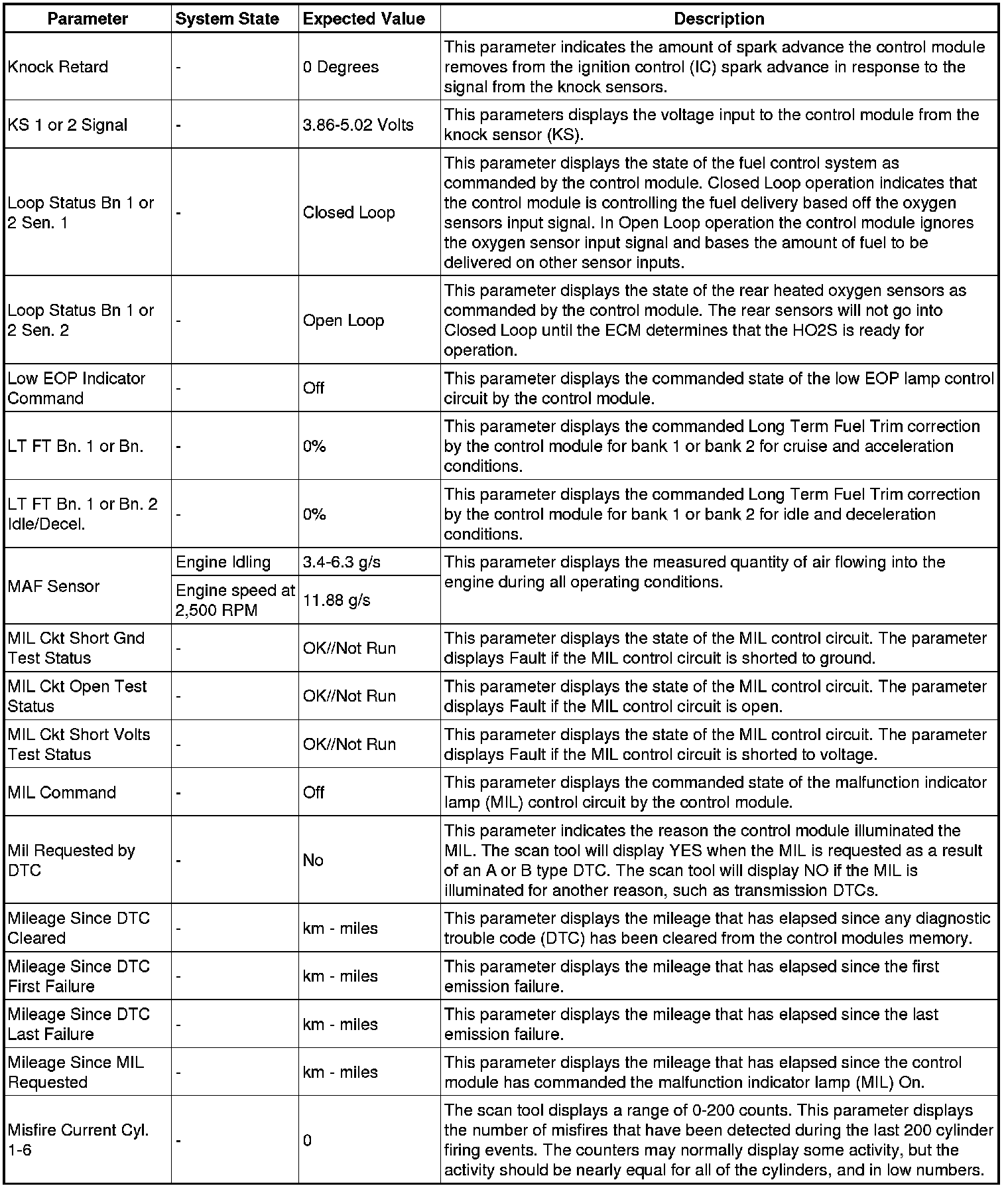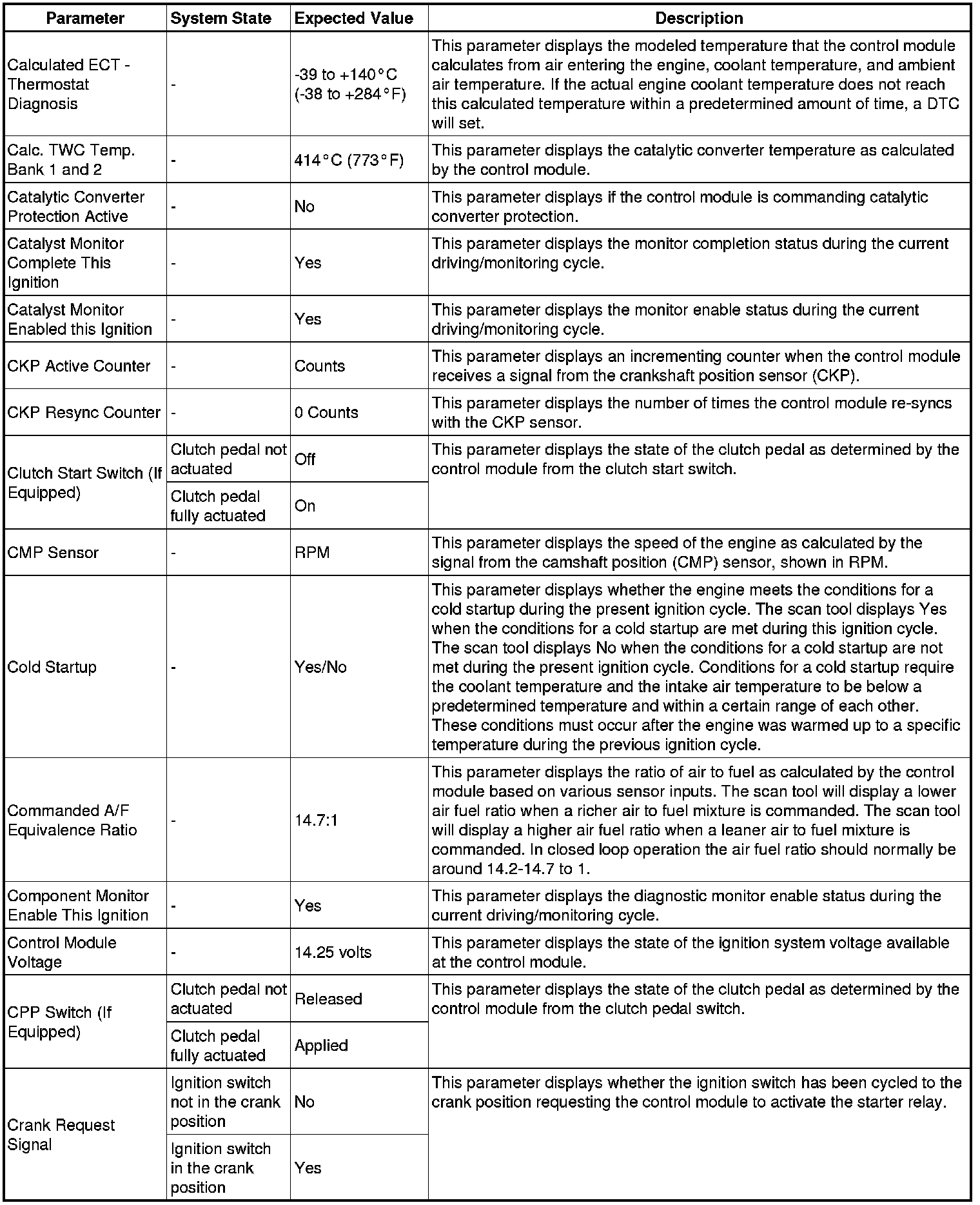 The Engine Control Module Scan Tool Data List contains all engine-related parameters that are available on the scan tool. The list is arranged in alphabetical order. A given parameter may appear in any one of the data lists, and in some cases may appear more than once, or in more than one data list in order to group certain related parameters together.