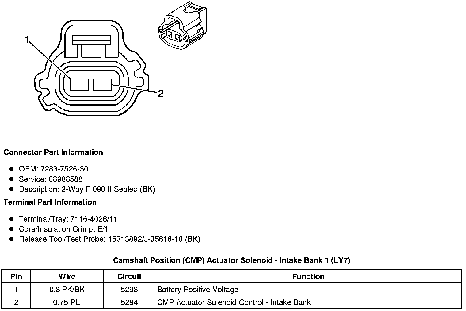 Camshaft Position (CMP) Actuator Solenoid - Intake Bank 1 (LY7 - Gas, 6 Cylinder, 3.6L, SFI, V6)