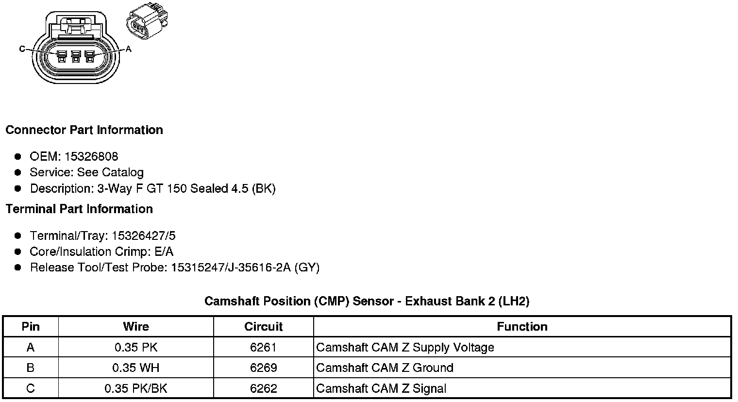 Camshaft Position (CMP) Sensor - Exhaust Bank 2 (LY7 - Gas, 6 Cylinder, 3.6L, SFI, V6)