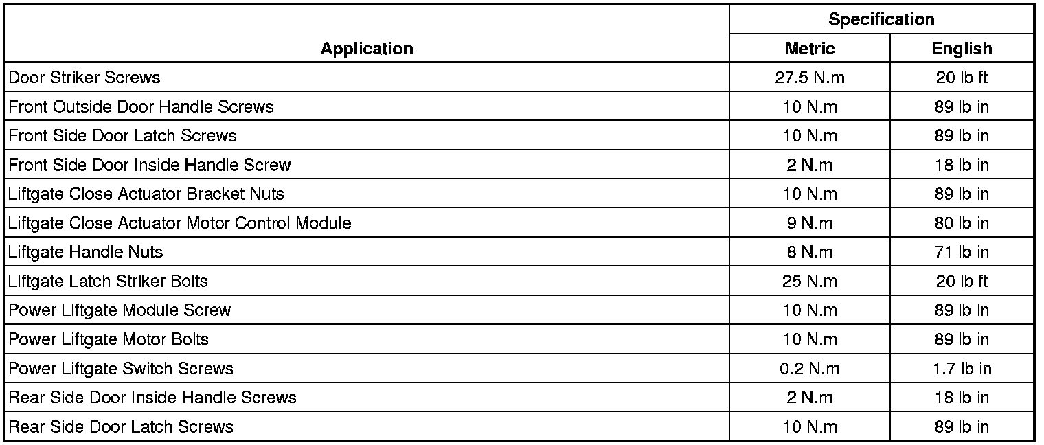 Fastener Tightening Specifications