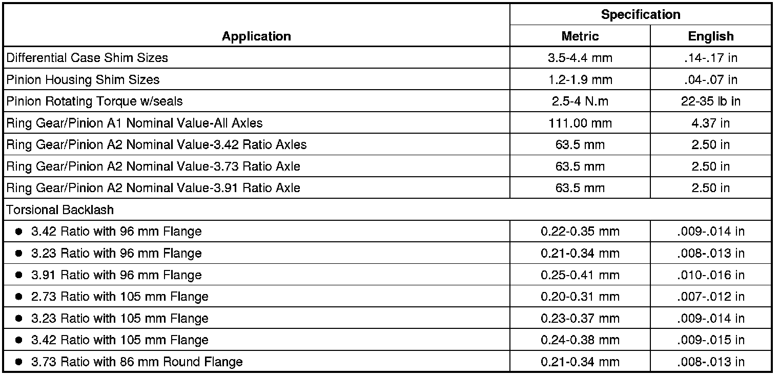 Rear Axle Specifications