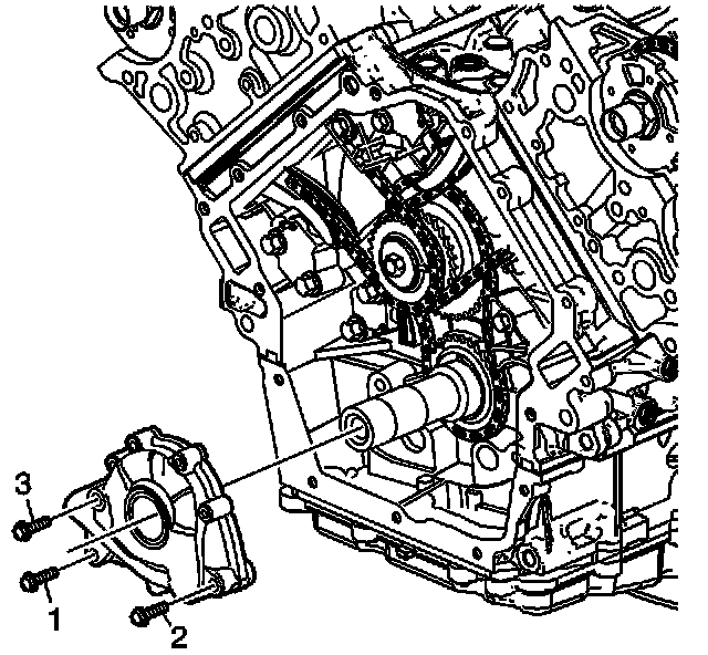 Apply upward pressure on the pump while tightening the three retaining bolts. Tighten the bolts in the sequence (1, 2, 3) shown.