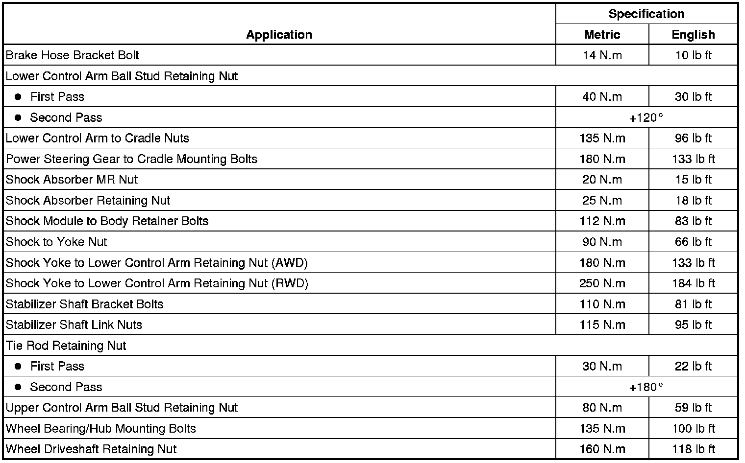 Fastener Tightening Specifications