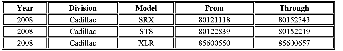 Dealers are to confirm vehicle eligibility prior to beginning repairs by using the GM Vehicle Inquiry System (GMVIS). Not all vehicles within the above breakpoints may be involved.