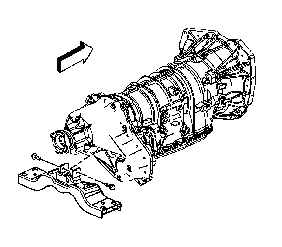 7. Remove the transmission mount-to-transmission case mounting bolts.