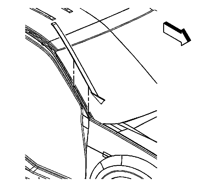 3. Install the windshield side reveal moldings. Refer to Windshield Side Reveal Molding Replacement (Windshield Side Reveal Molding Replacement) .