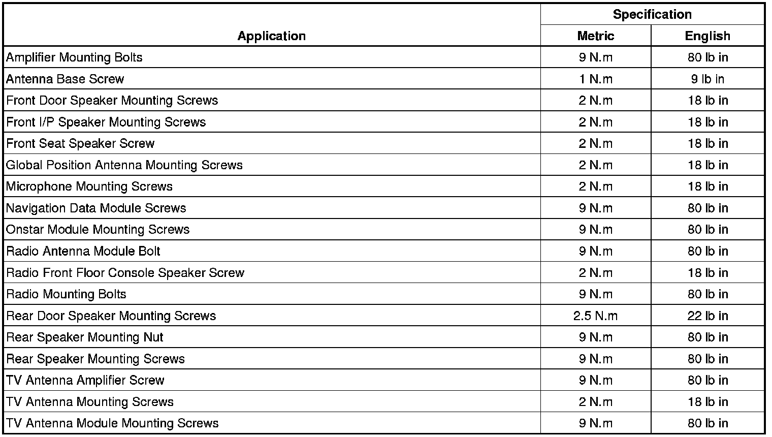 Fastener Tightening Specifications