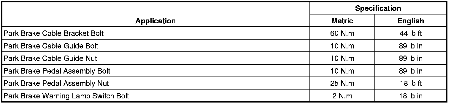 Parking Brake System: Specifications