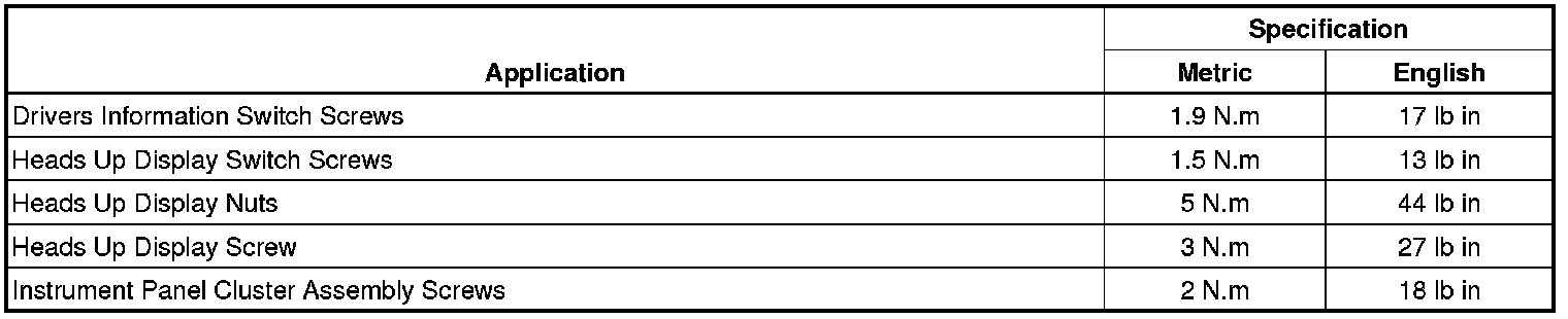 Instrument Panel, Gauges and Warning Indicators: Specifications