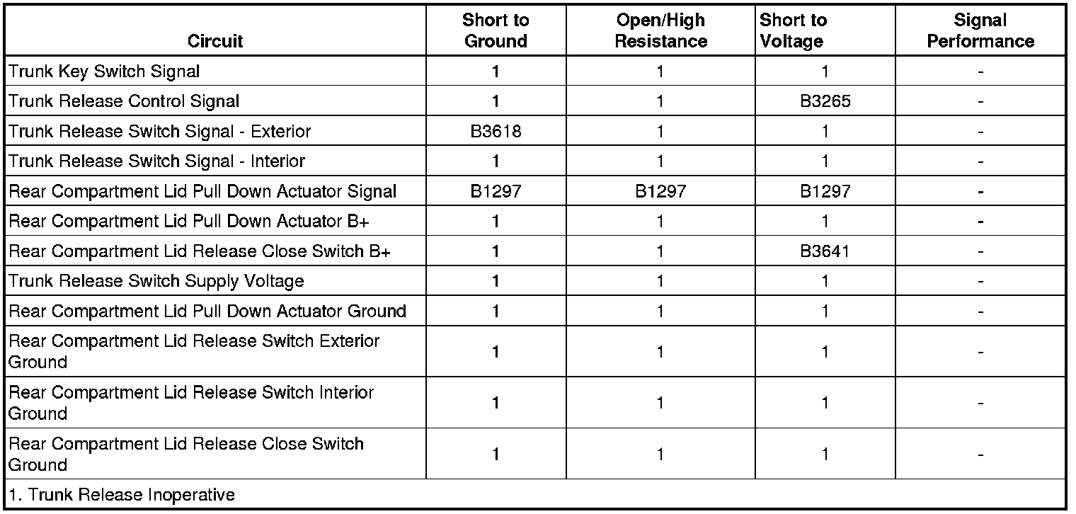 A rear compartment lid release close switch that is held or stuck in the closed position for more than 5 seconds will set DTC B3641.