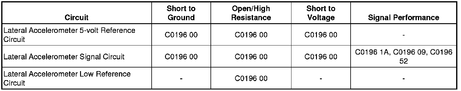 - Lateral Accelerometer Circuit Bias Level Out Of Range