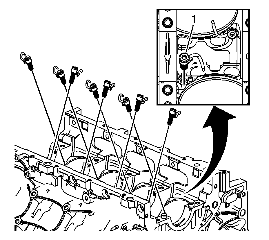 17. Install the piston oil nozzles (1) to the block - 6.2L LS9/LSA.