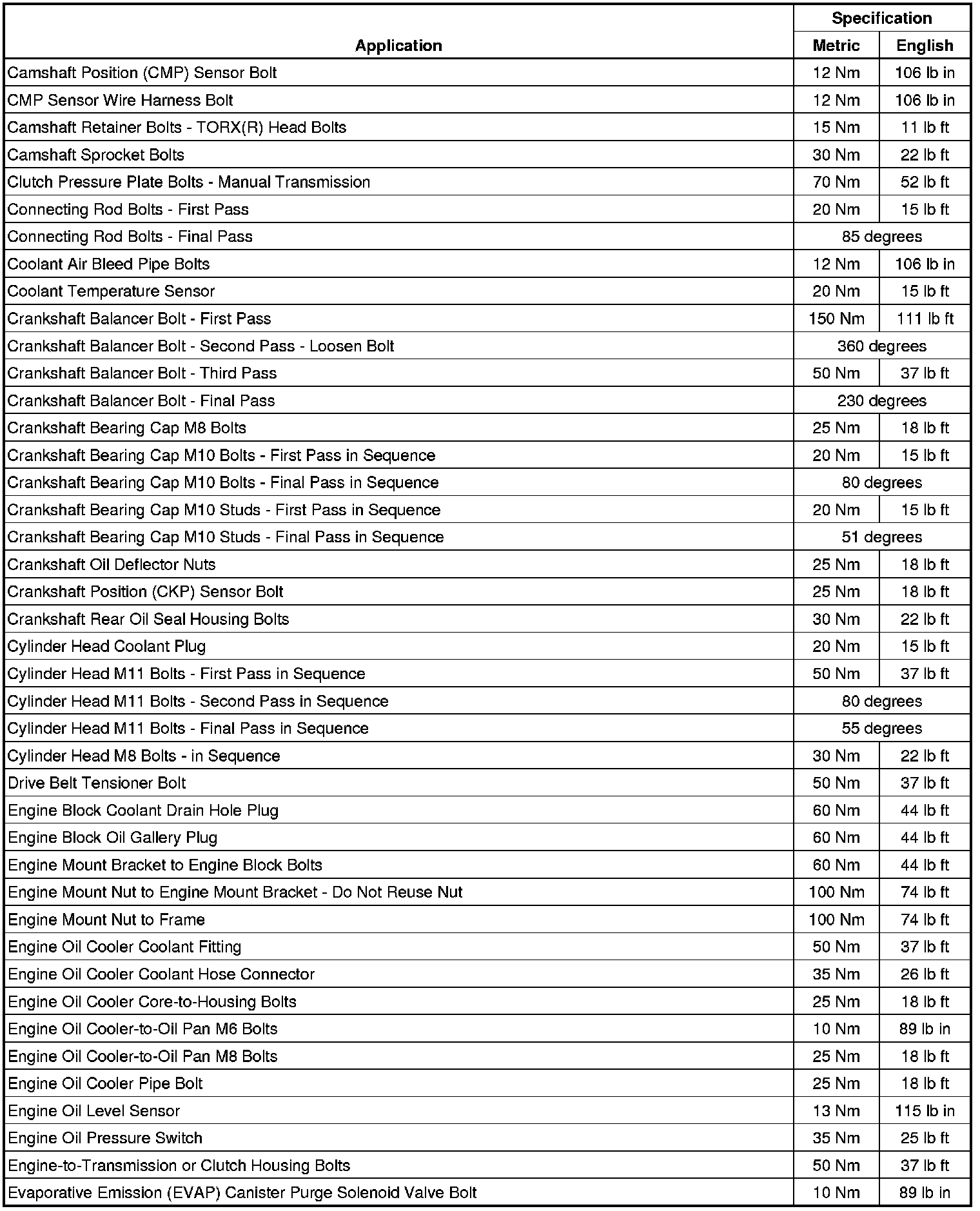 Fastener Tightening Specifications