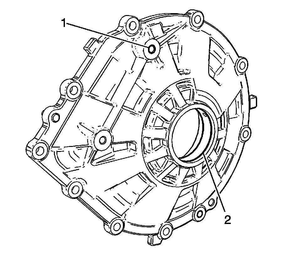 3. Clean the oil passage between (1) and (2), in the axle bearing bore.