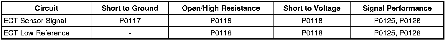 The diagnostic Fault Information table identifies each circuit that makes up an electrical subsystem and the associated circuit faults. DTCs and symptoms are listed in the table for all circuit fault modes. This information can be used to diagnose an electrical fault, or as a quick visual aid showing how the different symptoms and DTCs apply for the subsystem being diagnosed.